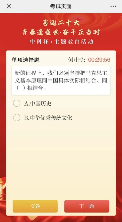 ●答题时限是25分钟,进入答题页面则系统自动开始倒计时。参赛者作答完毕可以随时提前交卷;为防作弊,答题中途退出时,倒计时将继续计时;25分钟倒计时结束后,系统将自动交卷。