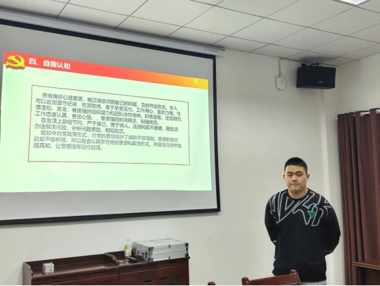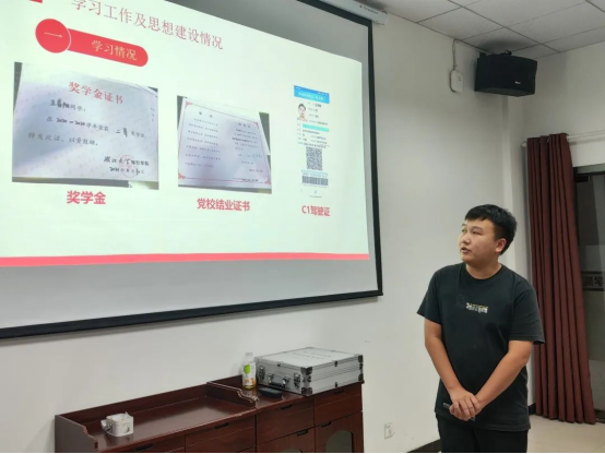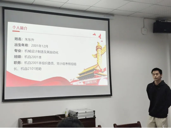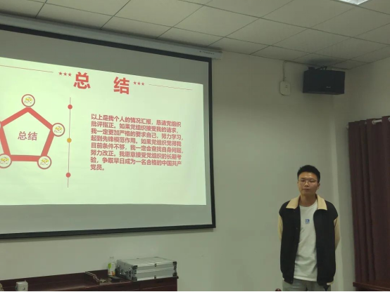 23位入党积极分子依次入场进行三分钟的PPT展示,答辩同学就自己在思想、学习、工作及生活等各方面情况作简要汇报,肯定自己的付出,反思自己的不足,表达对中国共产党的坚定信仰,自愿接受党组织的考察。