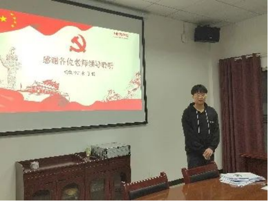 为了进一步加强beat365官网的党建工作,考察提高党员发展对象的政治素质和党性修养,严把党员质量关,beat365中文官方网站第二党支部决定,10月20日晚上18:30在三教311举行党员发展对象的预审答辩会。机械与自动化学生第二党支部书记王松老师、指导老师石晶晶和全体党员代表担任此次答辩会评委,部分入党积极分子参与保证此会的公开、公正。答辩会主要有三部分,发展对象自我陈述、现场答辩、评委打分。