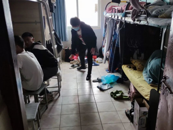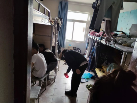 学生党员、学生干部、入党积极分子们积极发挥先锋模范带头作用,踊跃参与卫生消杀,对内八、外一两栋宿舍楼进行全方面、全覆盖、无死角的宿舍及公共区域消杀检查工作,彻底阻断新冠病毒的传播途径,确保疫情防控工作零盲区。
