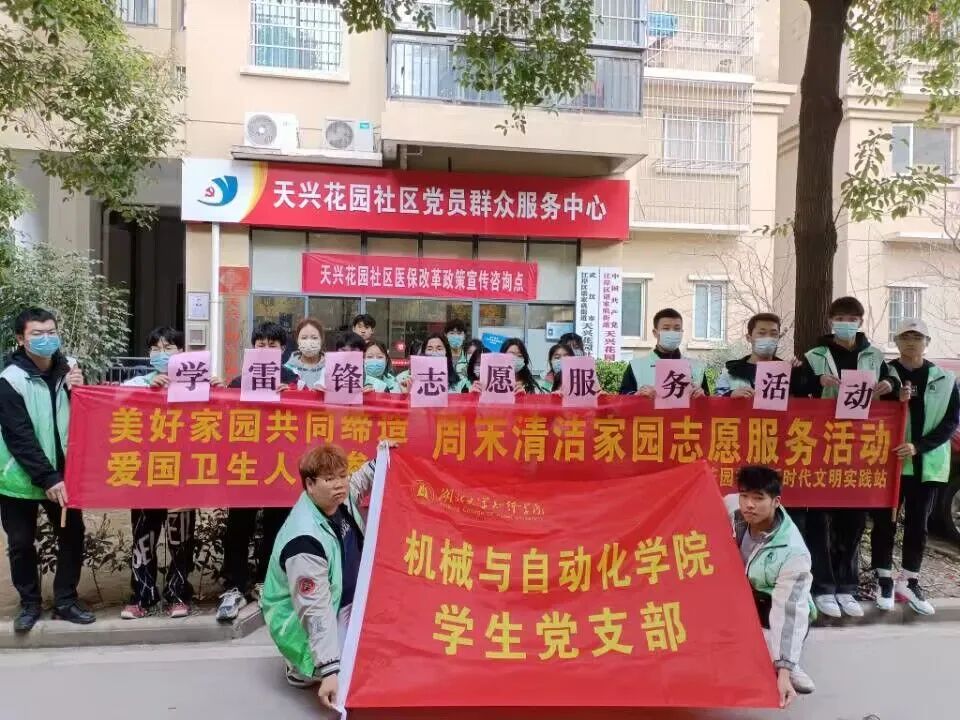 为进一步弘扬雷锋精神,深刻把握雷锋精神的时代内涵,以实际行动践行雷锋精神,让雷锋精神在新时代绽放更加璀璨的光芒。beat365中文官方网站学生党支部及分团委学生会于3月5日在谌家矶街道天兴花园社区开展第一次“弘扬雷锋精神,争做时代新人”雷锋月主题活动。早上九点,志愿者于学校大门口集合完毕,由第二党支部副书记韩霄和分团委学生会副书记张亚海整队并交代注意事项。