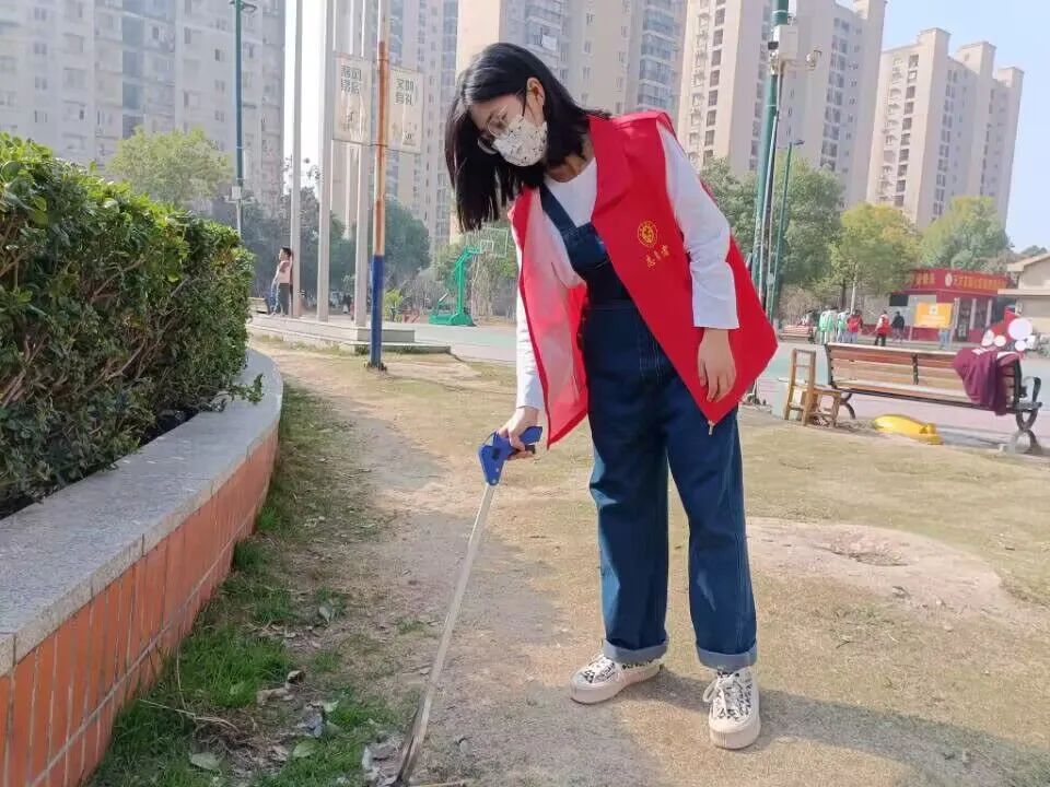 活动期间,志愿者们拿着夹子认真的捡活动中心草坪上的垃圾,清扫街道卫生死角,为社区提供干净整洁的生活环境,穿着志愿者服的志愿者们顿时成为了小区一道靓丽的风景线。