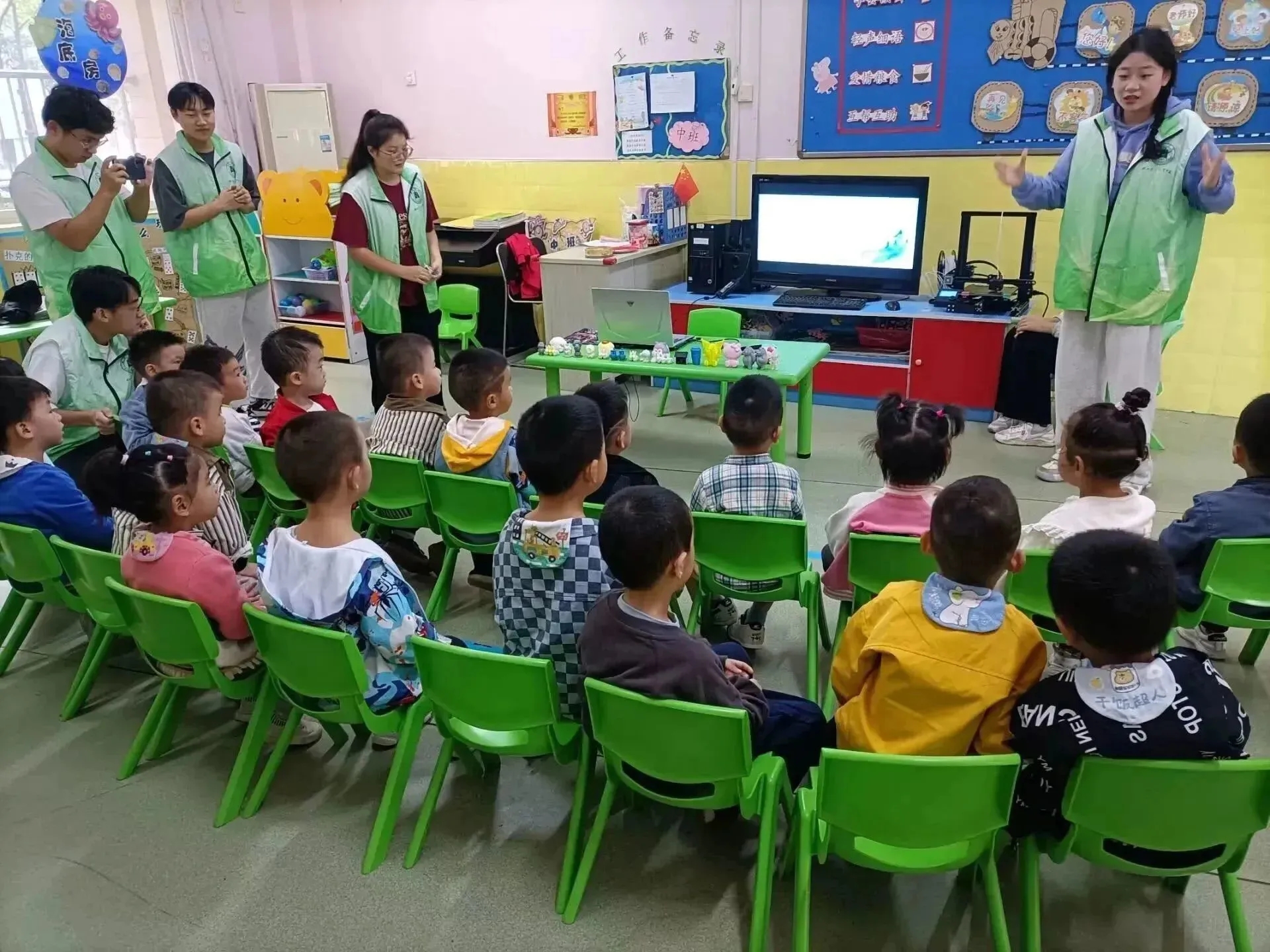 科技点燃梦想,创意成就未来。为不断深入学习贯彻习近平新时代中国特色社会主义思想主题教育,弘扬科学家精神,激发幼儿对科学活动的兴趣,2023年10月26日下午,beat365中文官方网站王松老师带领“鸿鹄”志愿服务团队走进快乐天使平安苑幼儿园,开展了一场主题为“怀鸿鹄之志,圆科技之梦”的3D打印科普体验活动。