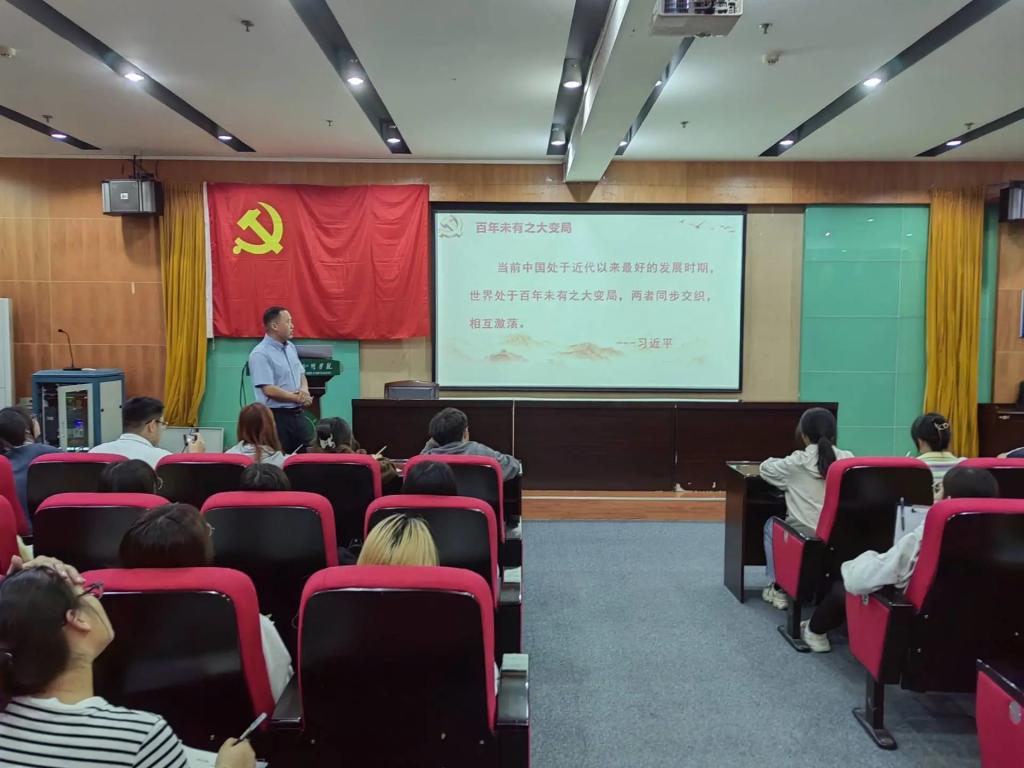 为了加强入党积极分子的思想建设,11月6日晚,beat365中文官方网站联合艺术与设计学院于学术报告厅202开展以“百年未有之大变局”为主题的专题党课,本次党课由beat365中文官方网站党总支书记陈驰主讲,beat365中文官方网站、艺术与设计学院第39期党校全体学员参加学习。