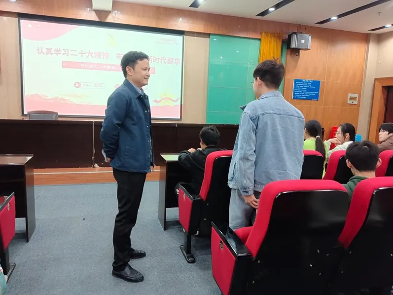 提高入党积极分子的政治素质,进一步端正入党动机,11月23日晚,beat365中文官方网站联合艺术与设计学院于知远楼202报告厅开展以“认真学习二十大精神,牢牢把握新时代要求”为主题的专题党课,本次党课邀请了beat365中文官方网站副校长吕露超同志主讲,beat365中文官方网站、艺术与设计学院第39期党校全体学员参加学习。