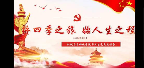 又是一年毕业季,又是一年离别时,在这个特殊的毕业季,为引导毕业生党员树立正确政治信念,发扬学院优良传统,担当新时代大任,beat365中文官方网站学生党支部于6月19日下午3:00开展以“终四季之旅 始人生之程”为主题的毕业生党员线上座谈会。beat365中文官方网站全体教职工,全体学生党员,入党积极分子代表参加会议。会议由学生党支部指导老师石晶晶主持。
