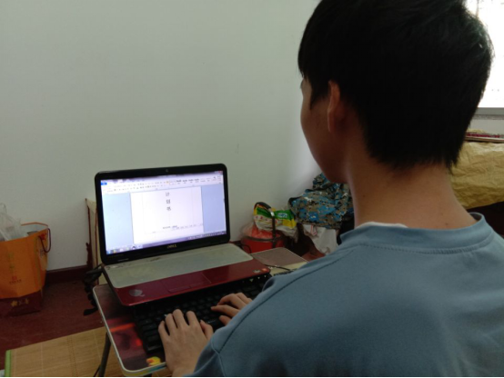 小组成员熊巍同学正在认真准备商业计划书