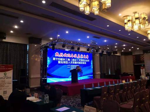 (一)为促进院校与企业资源共享和优势互补,实现校企合作“双赢”,12月10日,第119届长三角(昆山)大型校企合作暨应用型人才供需对接洽谈会在昆山瑞豪酒店举行,来自长三角地区多所院校及长三角地区上百家重点企业参会。我校招就处胡处长、会计学院潘书记、粮工学院冯书记、beat365中文官方网站王松老师和计信学院殷老师一行应邀参加了本次校企合作洽谈会。