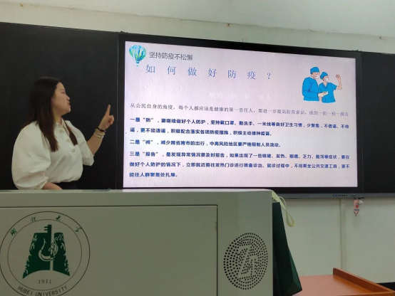 目前疫情防控形势依然严峻,作为疫情输入风险大的高校始终是疫情防控的重点,保证学生的健康是重中之重。班会上,石老师重点传达学校相关防疫政策,希望同学们能理解校园防疫工作的复杂性,能够树立本人就是疫情防控第一责任人的理念,能自觉、主动配合各项防疫工作。最后,石老师希望同学们能树立驱散疫情阴霾的决心,做疫情下的精彩读书人