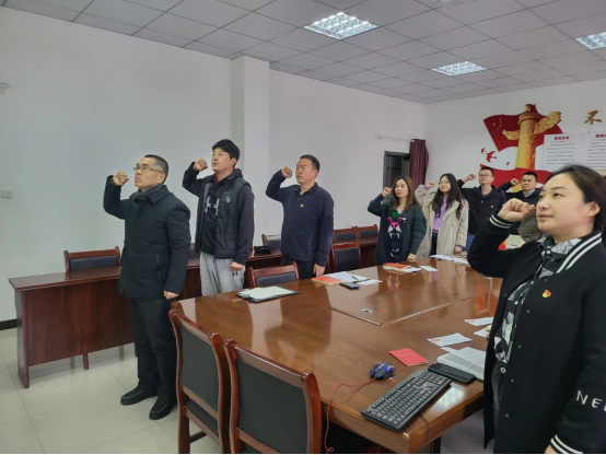 会议第一项:重温入党誓词,由邢宏根同志领誓。