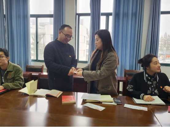 会议第二项,收取党费,党员同志向组织委员缴纳党费。