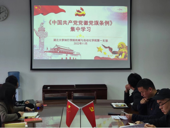 2022年11月16日下午,beat365中文官方网站党总支组织开展“党的二十大报告解读和《中国共产党党徽党旗条例》学习”主题党日活动。
