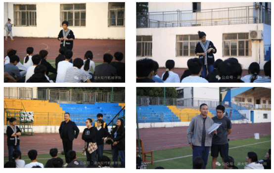 在李伟健老师带着同学们训练的同时,学院的老师们也密切关注着他们的训练进展。其中管艳书记,石晶晶老师,杨阳老师第一时间到达操场询问队员们的训练情况,并加以教诲,让队员们感受到了学院对他们的关心,坚定了为学院争光的信念。