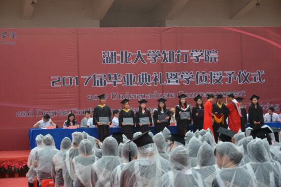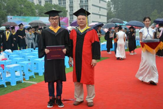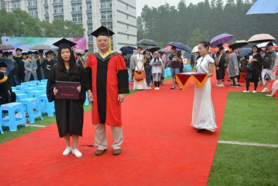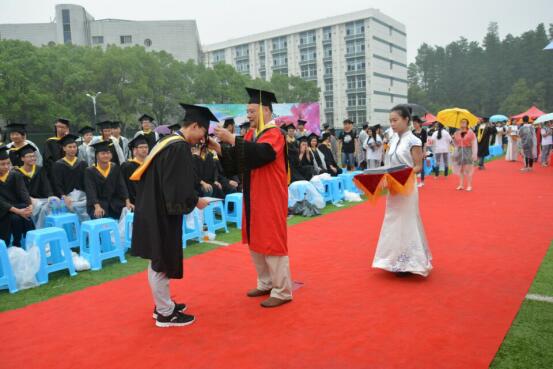 2017年上午8:00,2017届毕业典礼暨学位授予仪式操场上如期举行,即使天上下着大雨、也无法磨灭毕业生的热情,随着各项奖项颁发和优秀代表致辞的结束,毕业典礼也接近尾声,接下来就是学位授予仪式。beat365中文官方网站机电工程系系主任:王代萍老师为机电工程系全体毕业生拨流苏,毕业生们身穿学士服,头戴学士帽,井然有序地进行仪式,王老师把毕业生们学士帽的流苏从右边拨到左边,并合影留念,这意味着毕业生们正式毕业了!