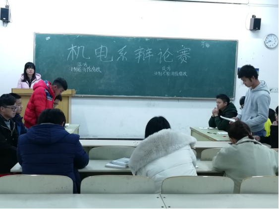 为了给同学们营造多元的校园生活,锻炼学生的口才、拓展学生的思维。我系2017级新生辩论赛经过几轮激烈角逐,终于在11月29日晚上8点20分知新楼305进行了辩论赛决赛,决赛双方为机电1702本和机自1701本。此次辩论赛决赛由演讲与辩论协会成员担任评委,机电系学生会主席陈彬彬及机电系大一新生观看了比赛。