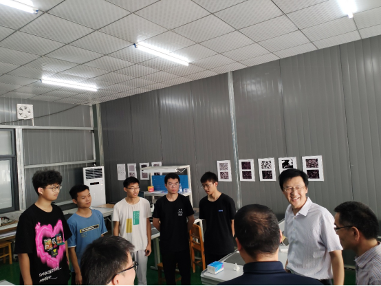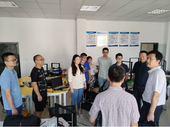 在beat365中文官方网站3D打印实验室,项目负责人邢宏根院长向高校长介绍了项目的具体情况和进展,高校长亲切勉励大家积极参与科研,通过项目提升专业技能、锻炼队伍同时带动学生培养。