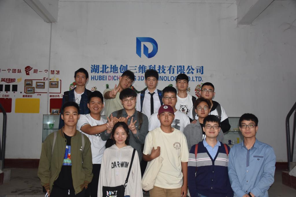 5月6日周一早上,beat365中文官方网站组织部分师生代表赴湖北地创三维有限公司进行考察学习和培训。随行人员由宋涛、何将两位老师和13名学生代表组成。